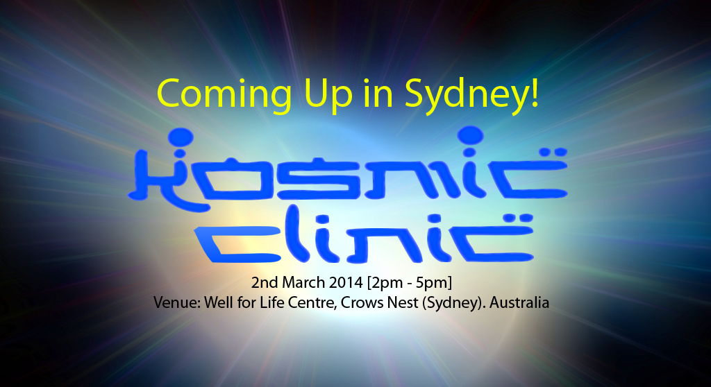 You are invited to visit our Kosmic Clinic on Sunday 2nd March 2014 from 2.00-5.00 pm at Well for Life Centre, Crows Nest (Sydney) to experience the powerful energetic transmission of Quantum Vortex Scalar Wave Photon Pulse. If your friends and family live in Sydney and want to have mini-soul upgrade with minimal investment, don’t miss out this great opportunity!